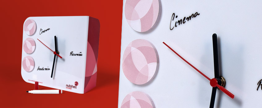 Com este objetivo, criamos um reminder da marca Nutshell em forma de memo clock.